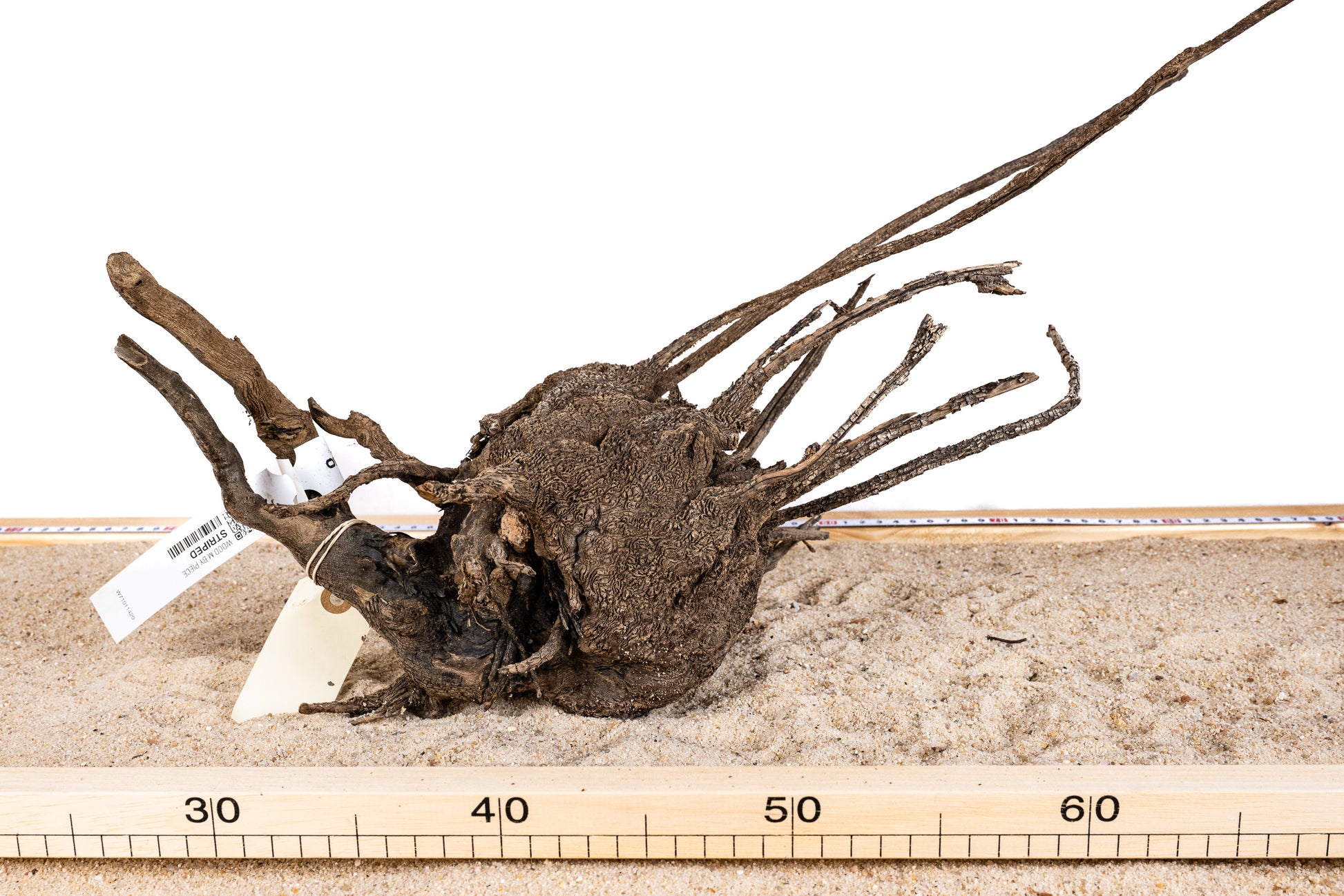 Striped wood is een uitzonderlijk en zeer gewild hardscape-materiaal vanwege de schaarste en unieke textuur. Dit zeldzame hout heeft opvallende gestreepte texturen, waardoor een opvallende visuele weergave ontstaat in uw water- of landhabitat. Het dikkere basiswortelgebied wordt aangevuld door vloeiende takken, waardoor nieuwe en innovatieve houtformaties in ryoboku-stijl mogelijk zijn.